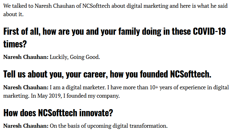 Having read the in-depth information shared by Naresh, the CEO of NCSofttech, one can also go through the detailed interview at GoodFirms.